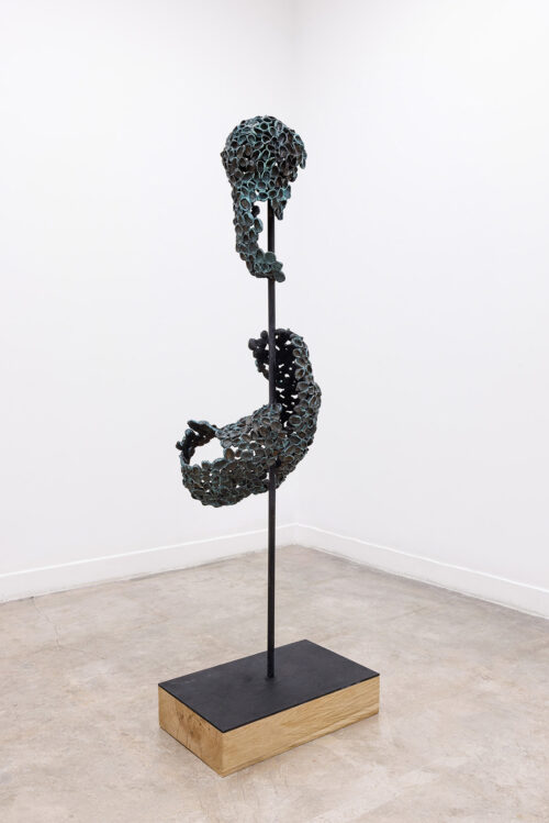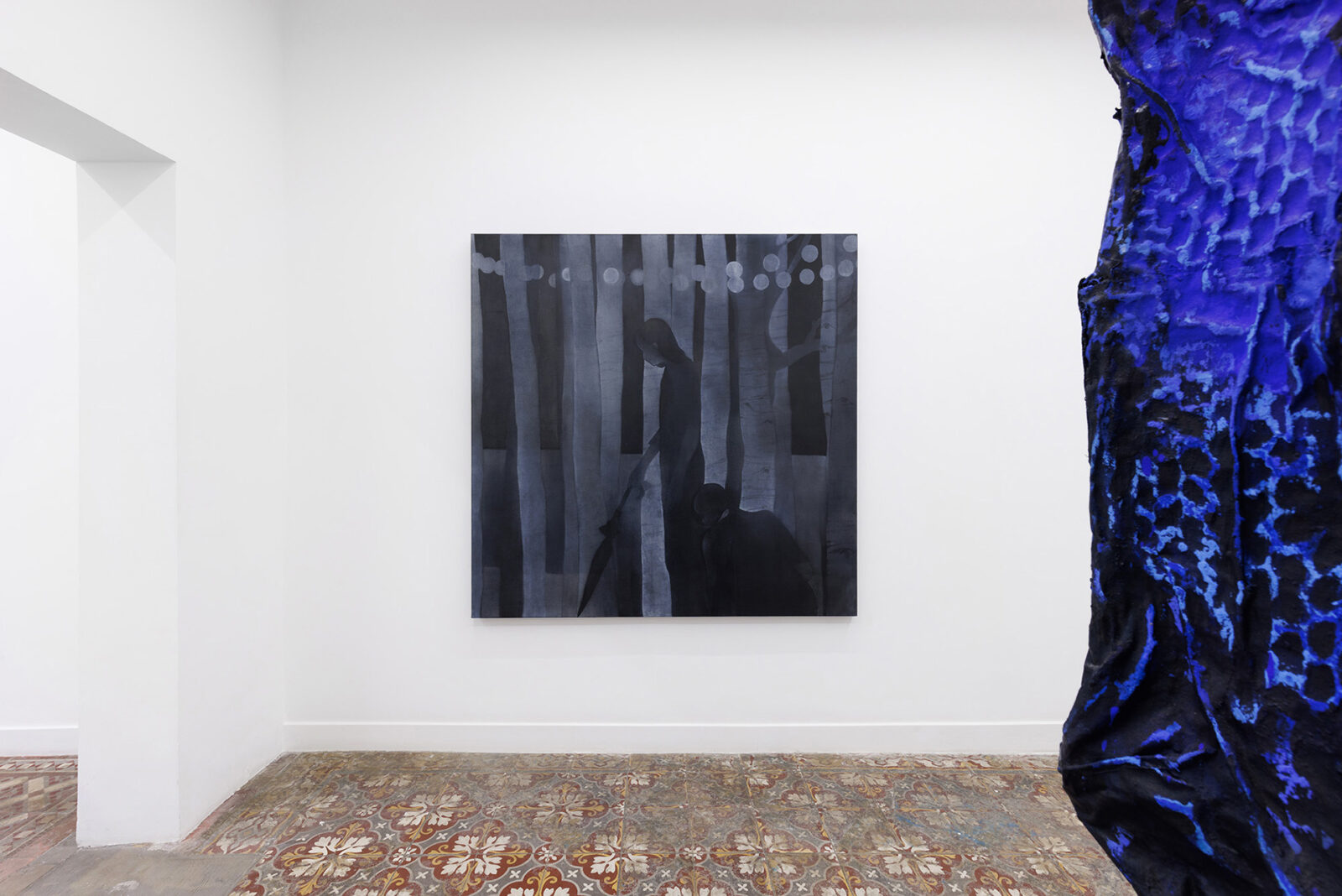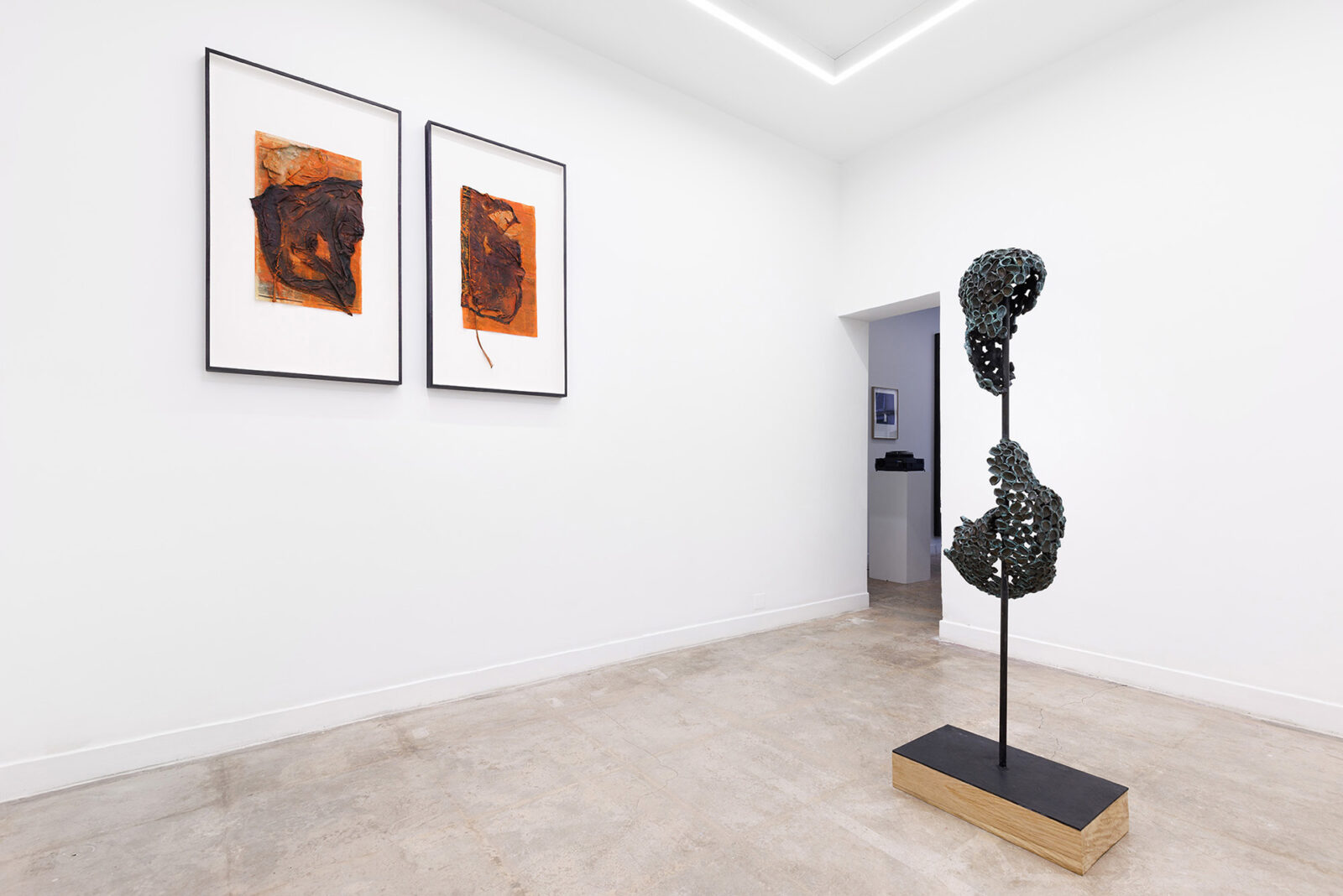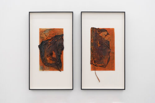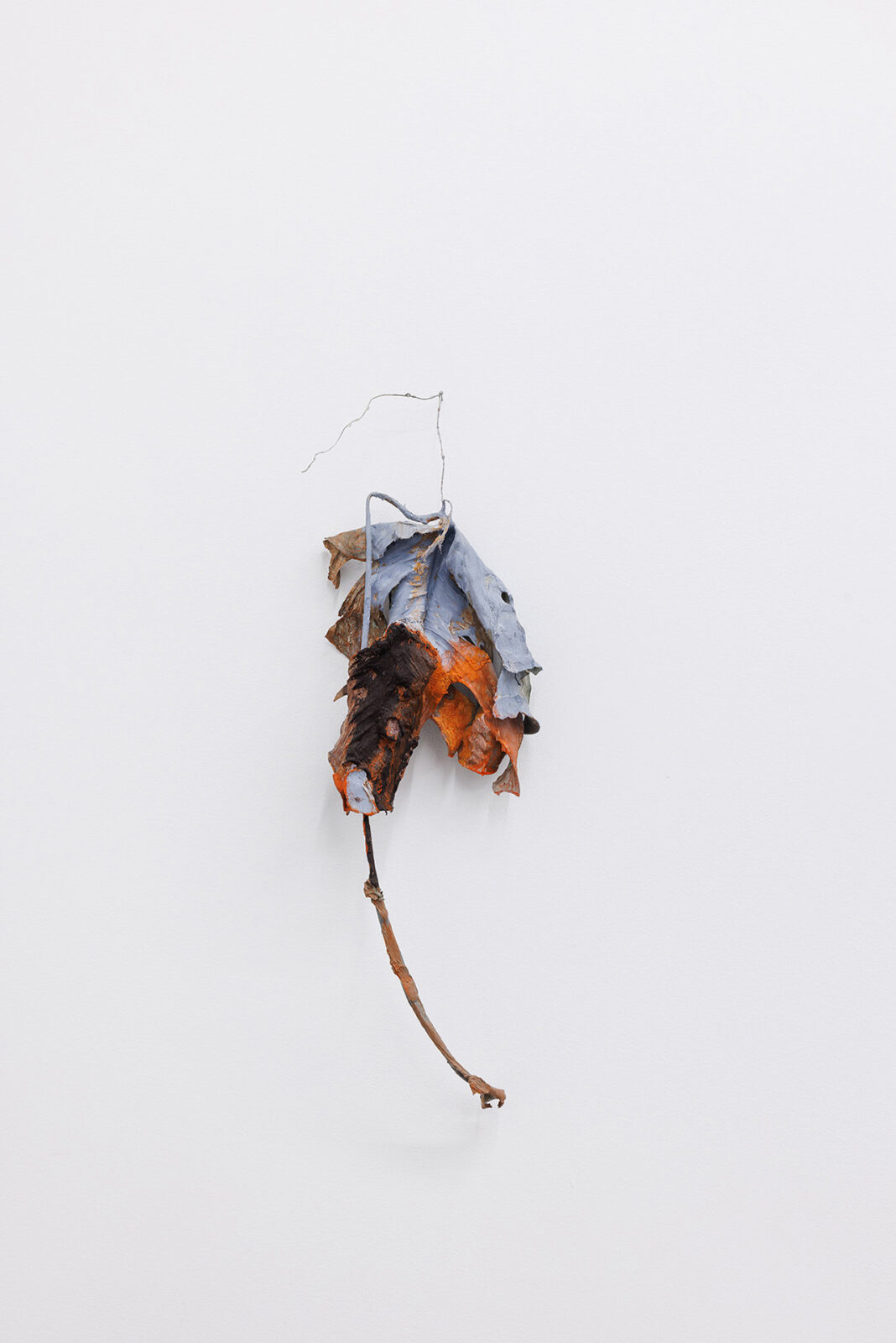 Capital U. A fusion of natural elements with civilisational waste growing out of concrete. A three-dimensional object spread out like a map. Aluminum honeycomb. An insect nest equipped with a light bulb. Handless arm. A tree-shaped figure. Zoe’s suit. A dry leaf the color of oil paint. Vermilion puddles. Trees have eyes. What you are looking for is beyond the image. Fingerprints everywhere. Not all of them are yours.