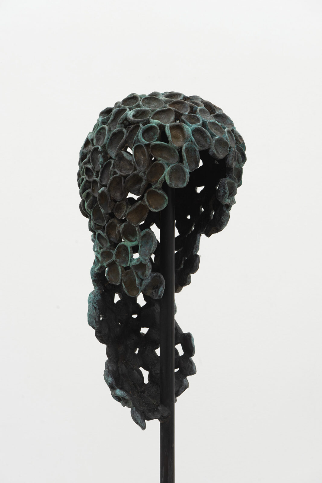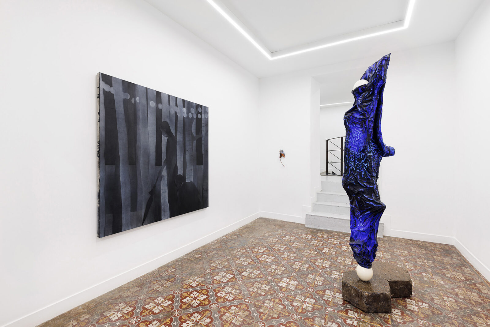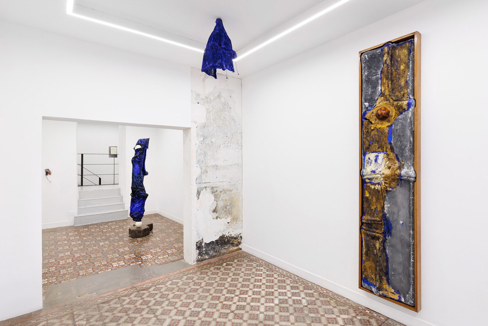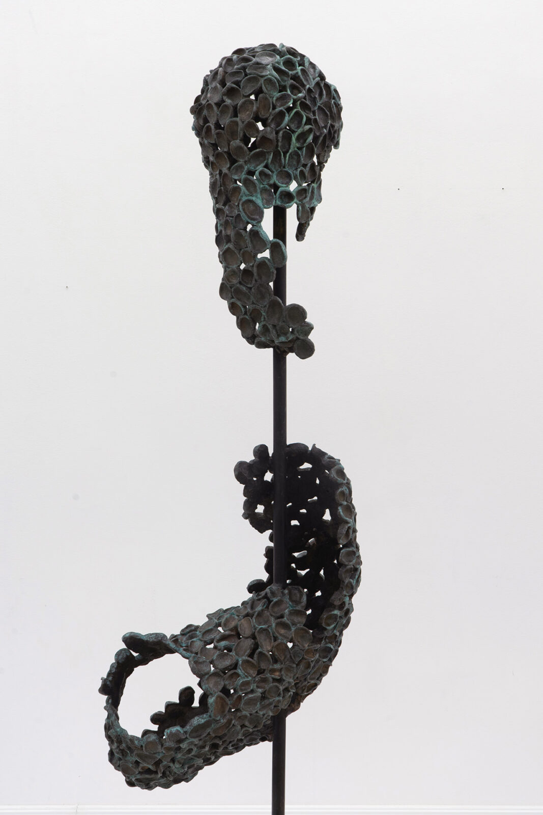 Capital U. A fusion of natural elements with civilisational waste growing out of concrete. A three-dimensional object spread out like a map. Aluminum honeycomb. An insect nest equipped with a light bulb. Handless arm. A tree-shaped figure. Zoe’s suit. A dry leaf the color of oil paint. Vermilion puddles. Trees have eyes. What you are looking for is beyond the image. Fingerprints everywhere. Not all of them are yours.