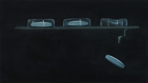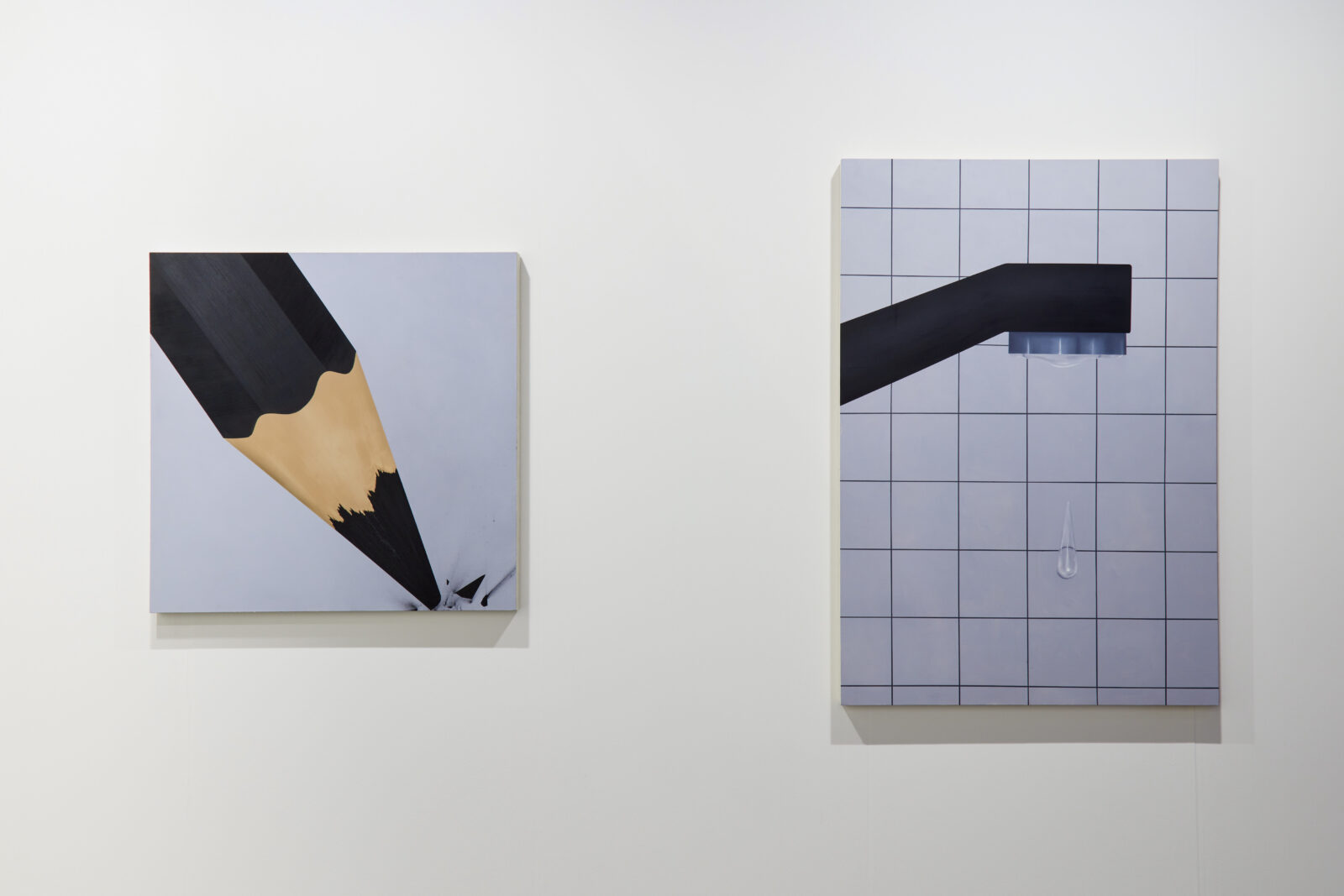 Kręcicki is a sensitive observer of the details of human existence and draws inspiration from banal everyday situations, which undergo a careful formal transformation in his works. The series of paintings realized for the Paris+ presentation make up a fragmentary picture of a mental crisis, stagnation caused by minor obstacles – the resistance of matter so to speak, which is the main subject of the artist’s work.