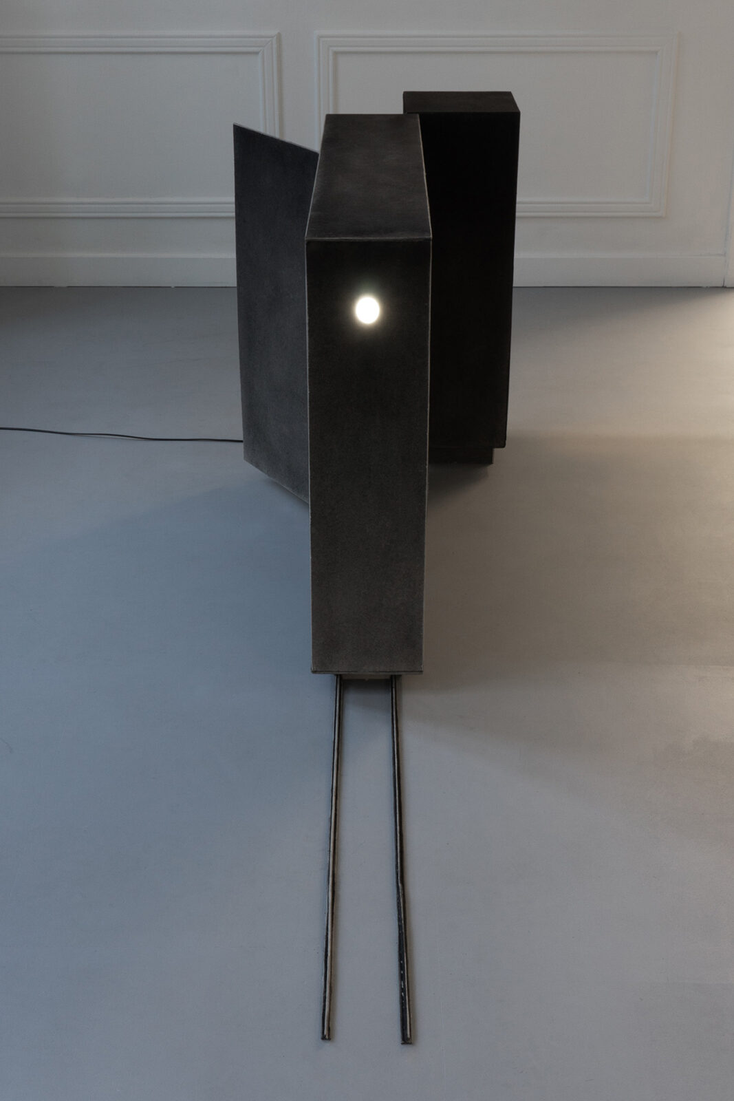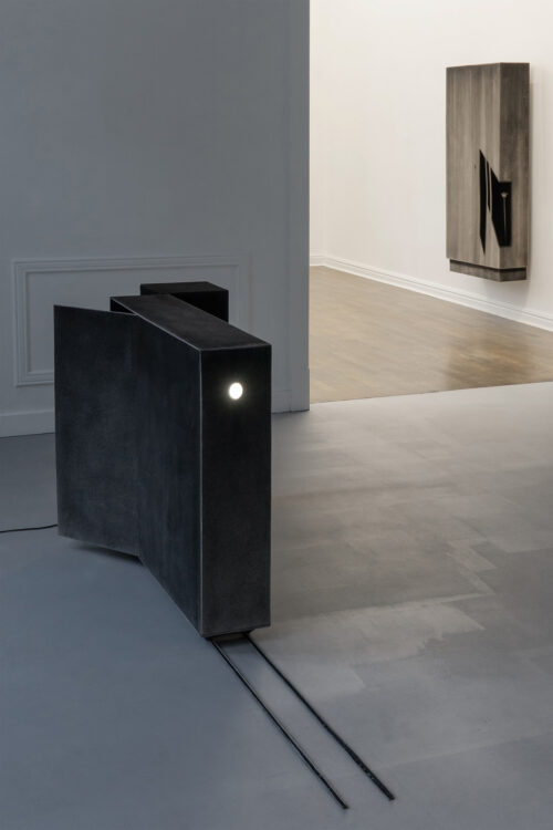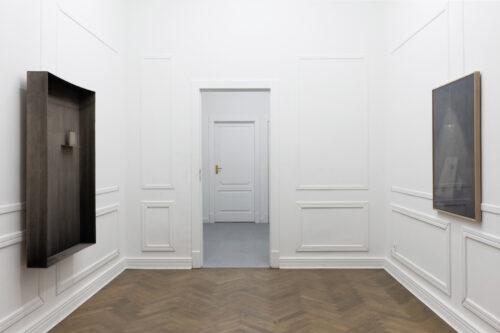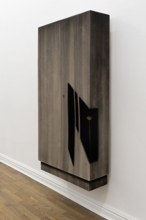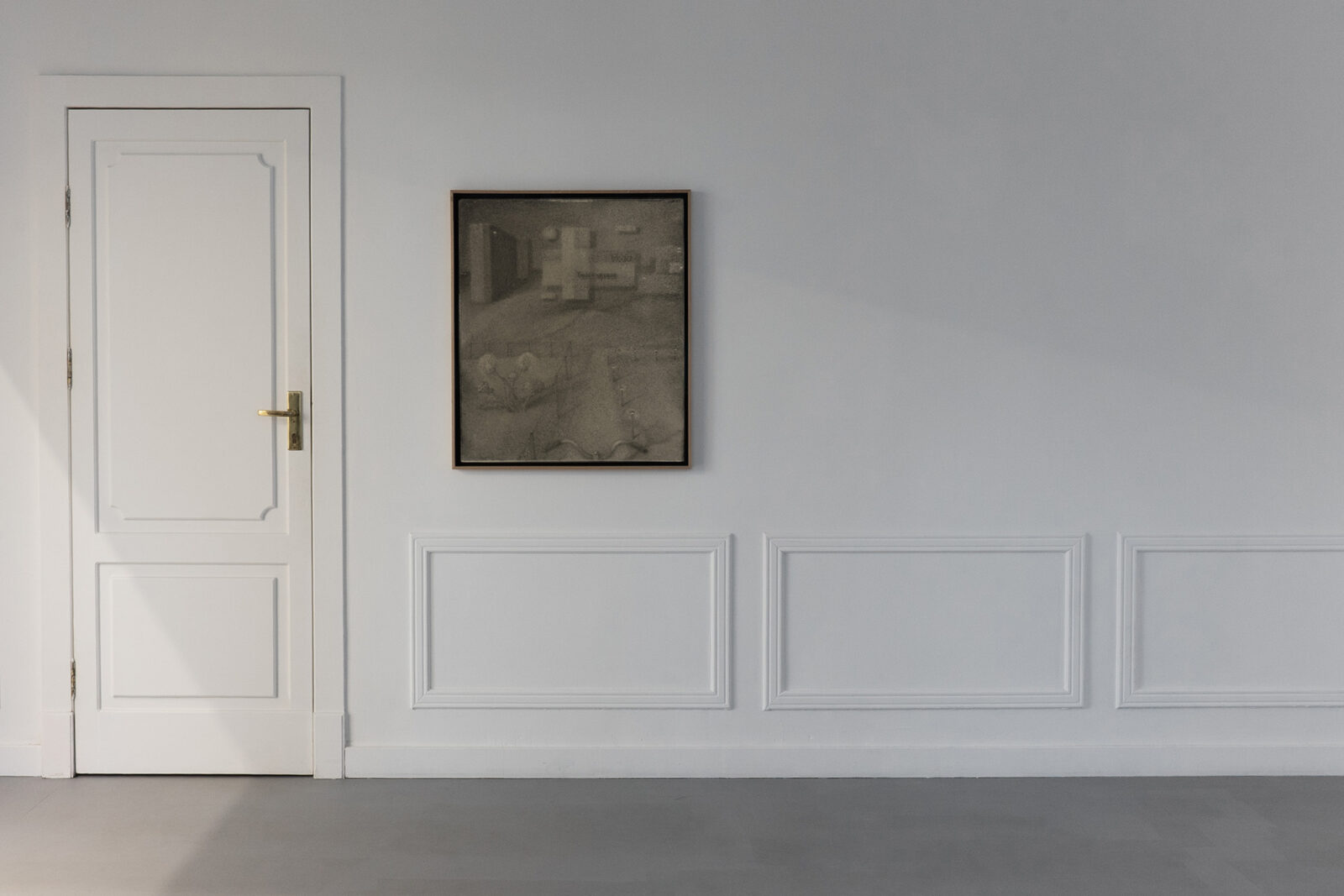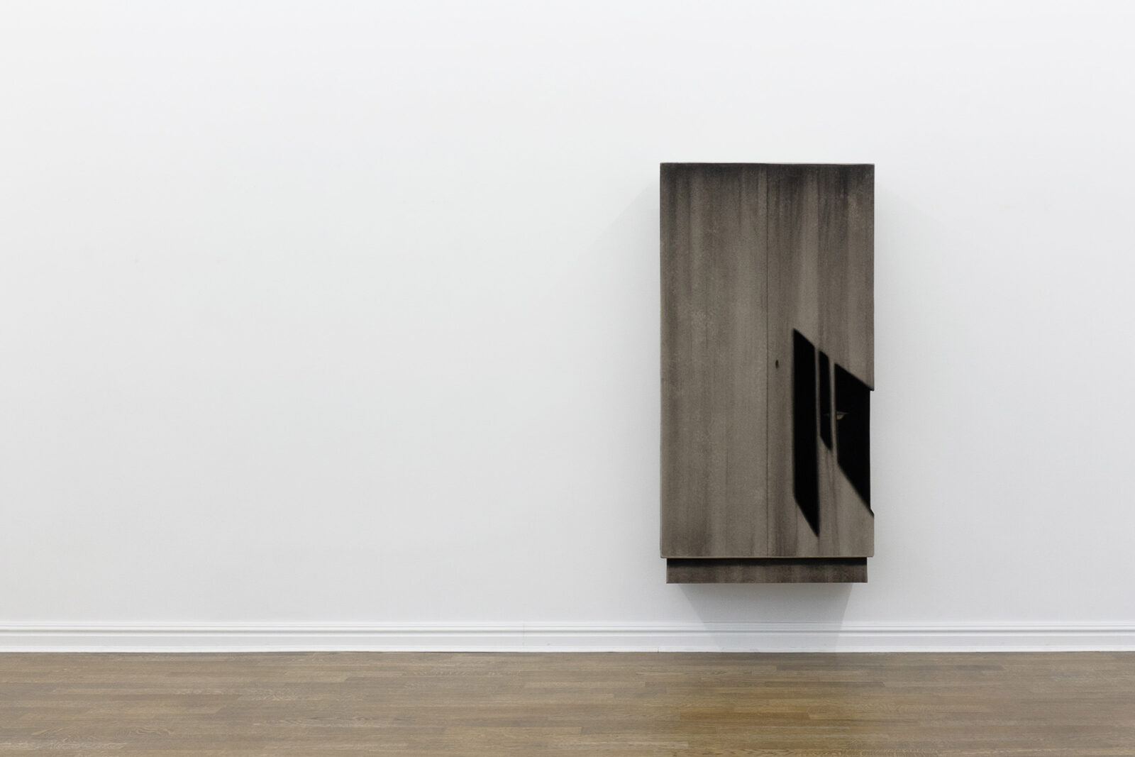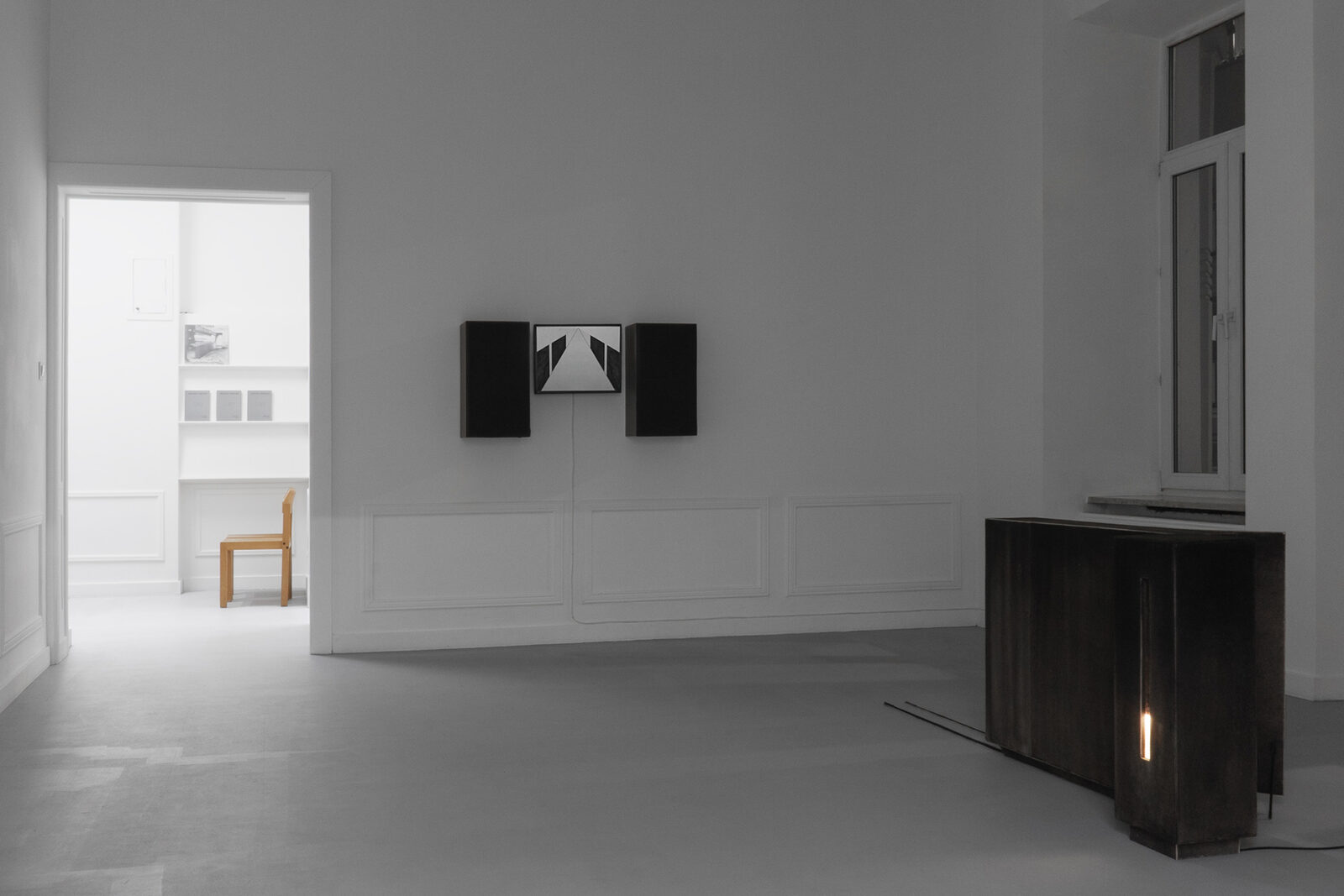 For the past several years, Bąkowski has been developing his own technique of drawing with charcoal on sanded cardboard. The resulting grainy depictions evoke underexposed views of cityscapes and household appliances in semi-darkness, as well as low-resolution video recordings. The artist himself traces the origins of his own aesthetic to the 1980s, particularly to the quality of VHS recordings from that period. Bąkowski’s work is almost entirely retrospective: he is interested in memory and perception, and is fascinated by the provisional and accidental nature of their construction. Hence the simple means, basic materials and home-made quality.