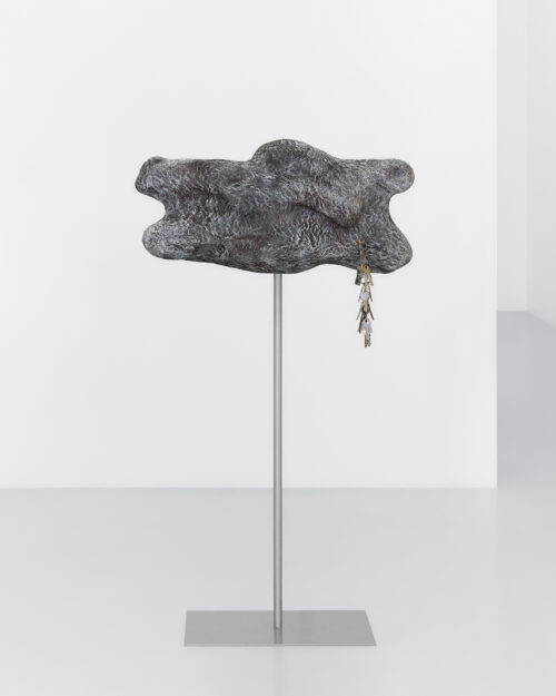 Physical geological processes serve as a key inspiration for the works in Viewpoints. The layering and compression of sediment, the winds pushing dust to and from, sandpapering a rocky shore, the treading of creatures shaping the weary divots of the cliff, and a persistent erosion dragging the roots to the creekbed. For Mickiewicz, these cyclical abrasions shaping the earthly features around us are analogous to the tenuous, additive processes of memory and experience that comprise identity formation. Just as the landscape is in a state of ever-shifting impermanence, so is the transformative construction of the inner life. A piercing allegory, Mickiewicz combines physical and psychic processes to build sculptures that offer rooted yet transformed moments of perception, constructing a new way of seeing.